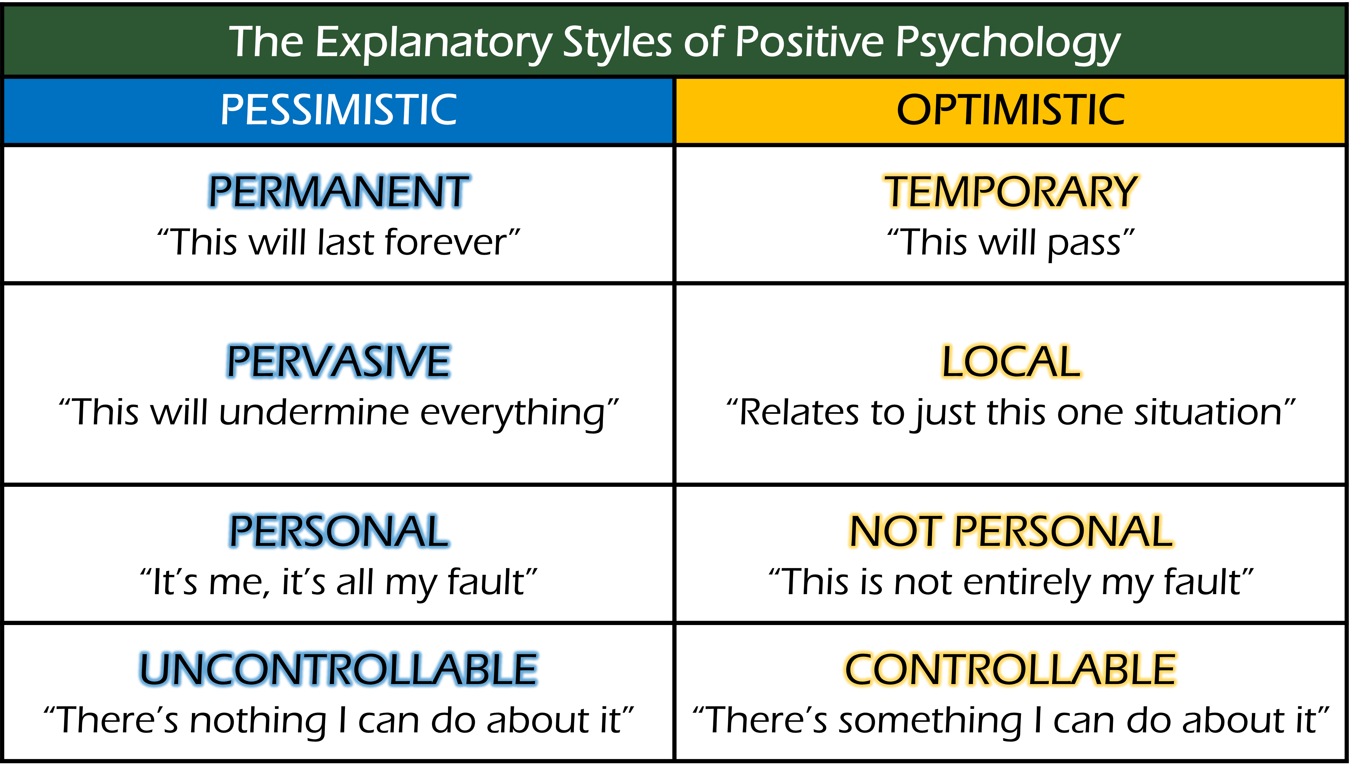 Once again, Dr. Martin Seligman has a model for us to utilize: